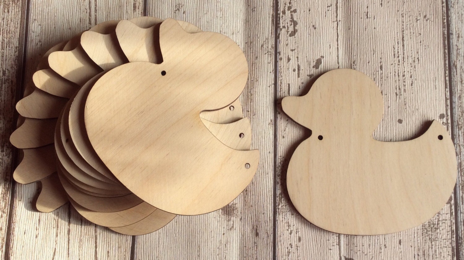 Laser cut from quality 3mm birch plywood, then sanded for a beautifully smooth finish, pack of ten cute baby ducks available with or without holes.